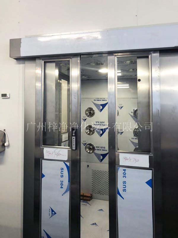 風淋室可以在貨物或人進入潔凈室時清除人身和物品表面附著的塵埃,減少帶入潔凈室的灰塵量,同時兼有氣閘室功能,可防止不潔凈的空氣由門侵入,以配合潔凈空調系統確保潔凈室達到所需潔凈度。全自動感應門,自動門風淋室采用自動門感應控制,人貨進出無需手動,更加方便快捷,節省人工,效率更高。