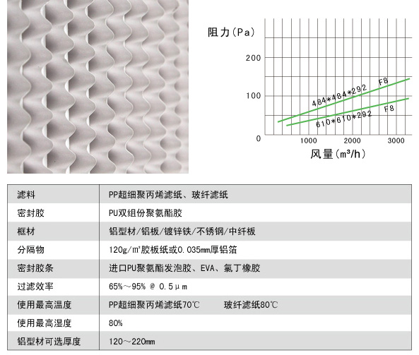 >>有隔板中效過濾器用于捕集0.5um以上的微粒