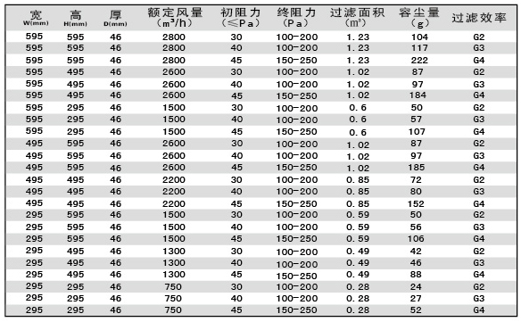 板式初效過(guò)濾器技術(shù)參數(shù)