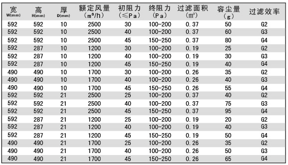 過(guò)濾效率:G1、G2、G3、G4