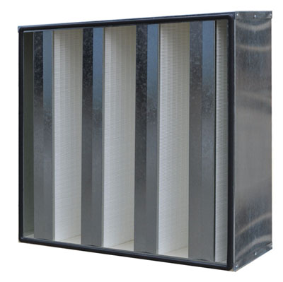 鍥形褶層過濾器濾材兩面180度翻折,形成鍥形褶層。濾料折彎時有兩道壓痕,使其在隔板的尾端處形成鍥形盒式摺層,鍥形盒式褶層可以防止濾料破損。有些過濾器生產商采用了單壓痕或滾痕式濾料褶層,甚至簡單地人工折紙,在這種惰況下,濾料很容易被波紋形隔板尖銳的折頂損壞。或在過多搬運過程中損壞濾紙。濾料HV系列浦料是采用超細玻璃纖維制成的高密度紙,浦料褶登以盡量擴大派料的有效過濾面積,從而降低濾料的濾速,這對高效過濾器是相當重要的.